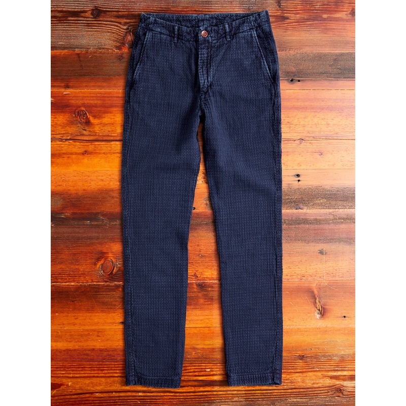 DetailsSizingBrand InfoThe1870 Stitched Sashiko Trouser from Studio D'Artisan is crafted from asoft and lightweight cotton canvas, embroidered with a cross-hatch stitch to resemble vintage boro repair. Dyed with natural indigo, the fabric will fade to a wh