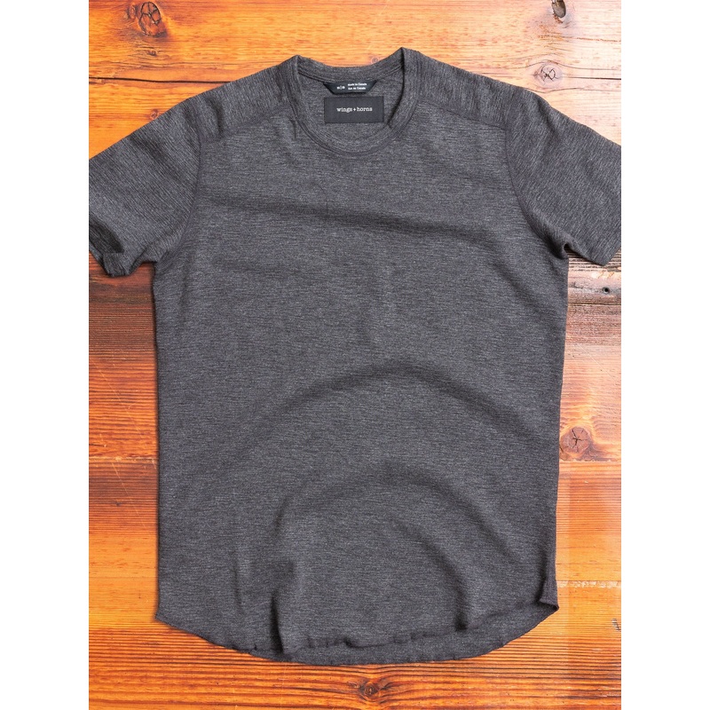 • wings + horns’ signature 1×1 slub fabric is a textured cotton fabric with a slight sheer finish. The fabric, exclusive to wings + horns, is made in their Vancouver B.C. factory and is both lightweight and breathable. The classic crewneck t-shirt features a longer cut that is slim in the body and arms, and cut with a scalloped hem at the waist.