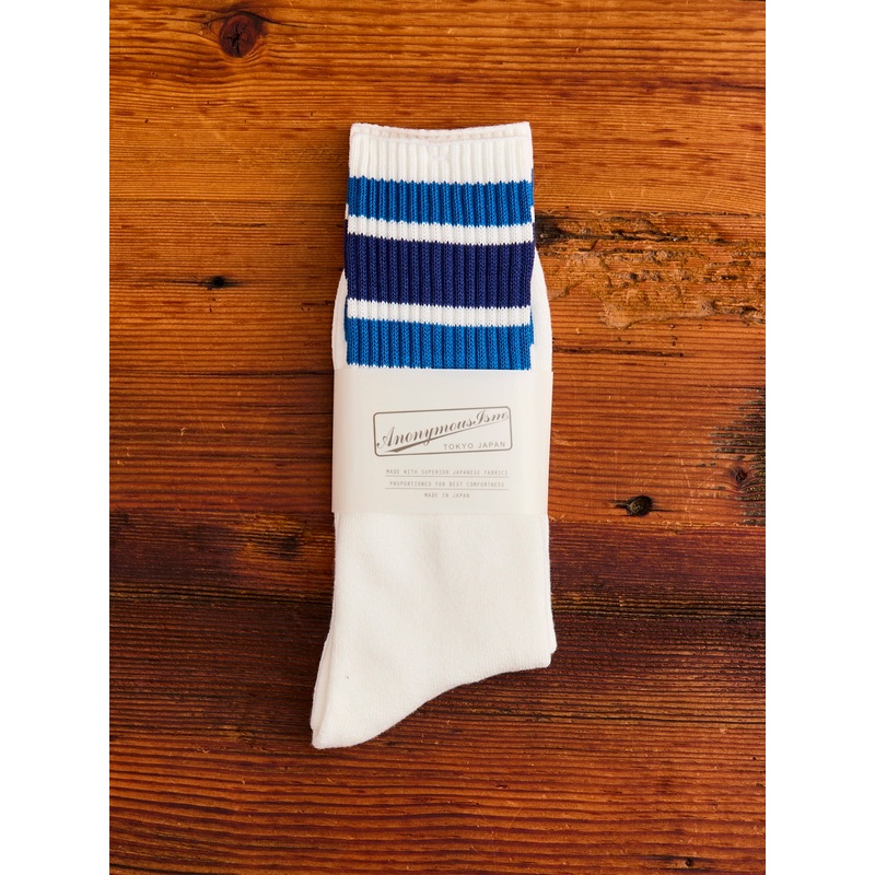 • The Slub Stripe socks from AnonymousIsm are woven using the brand’s signature low-tension slub weave in a convenientcrew length that is roughly the height of a 7-hole boot. The socks feature a high-pile texture that is soft and flexible, and a classic stripe design at the ankle. Each pair of AnonymousIsm socks are expertly crafted by their team in Tokyo, Japan.