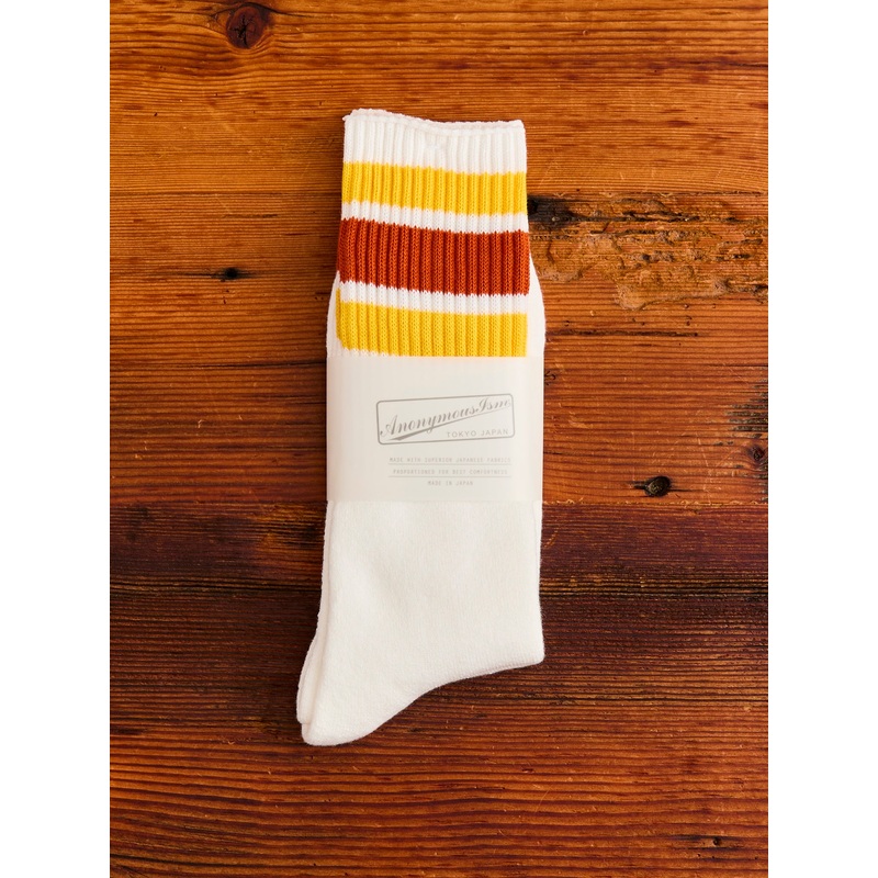• The Slub Stripe socks from AnonymousIsm are woven using the brand’s signature low-tension slub weave in a convenientcrew length that is roughly the height of a 7-hole boot. The socks feature a high-pile texture that is soft and flexible, and a classic stripe design at the ankle. Each pair of AnonymousIsm socks are expertly crafted by their team in Tokyo, Japan.