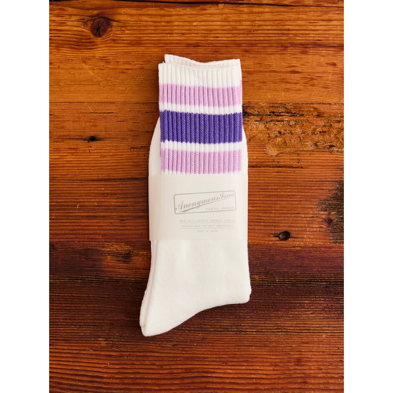 • The Slub Stripe socks from AnonymousIsm are woven using the brand’s signature low-tension slub weave in a convenientcrew length that is roughly the height of a 7-hole boot. The socks feature a high-pile texture that is soft and flexible, and a classic stripe design at the ankle. Each pair of AnonymousIsm socks are expertly crafted by their team in Tokyo, Japan.