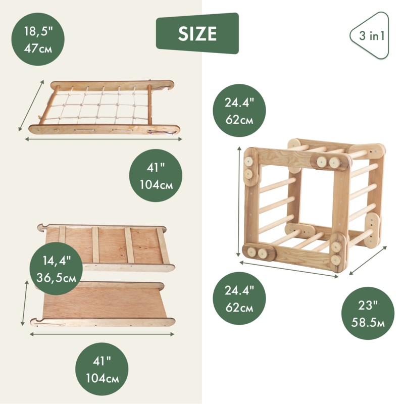 This unique 3in1 Montessori climbing set is one of Goodevas' bestsellers, best for toddlers from 6 months to 7 years old. Designed according to the Montessori method, which promotes the development of children through physical activity. Increases the coura
