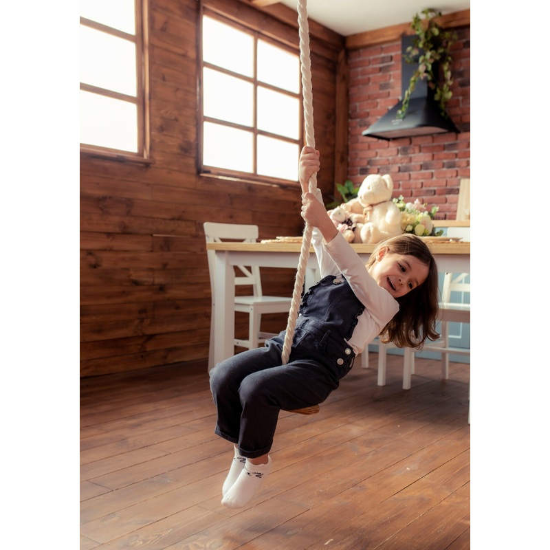 All components of the set are made from high-quality oak wood without the use of any chemicals. All surfaces are carefully sanded to provide a smooth and safe surface for children to use! The disc rope swing (100% organic cotton) is comfortable for children’s hands and grip. The protective coating allows you to use the climbing set for kids both outdoors and indoors!