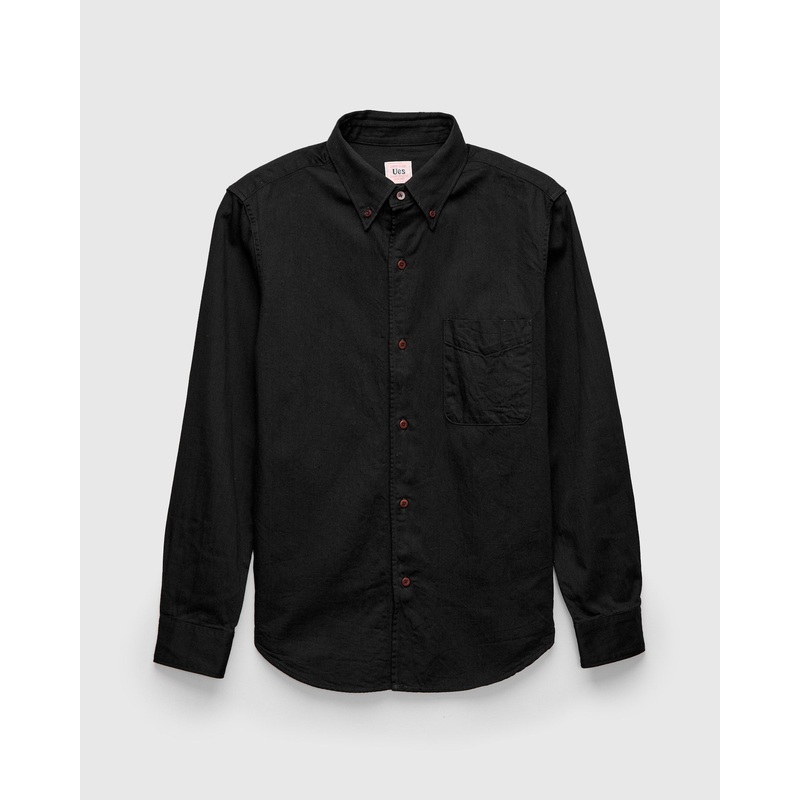 DetailsSizingBrand InfoWoven at a lightweight 6oz and dyed a deep black using sulfur, this classic button down is completely made in Japan with UES's signature vintage treatment. The fabrics sulfur black dye will fade with wear, eventually achieving a mute