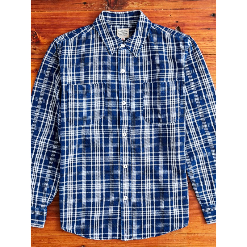 730WS Heavy Washed Flannel Shirt in Indigo Check