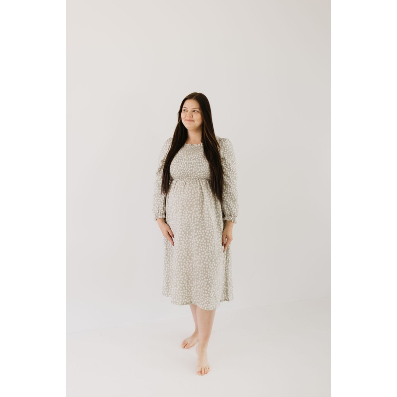 The sweetest dress that features in everyone’s favorite French Gray Floral print. Be sure to check out our matching rompers in baby sizes and child size dresses so everyone can match!