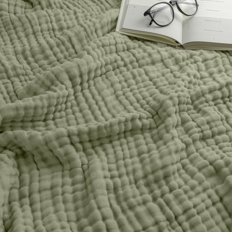 • Soft and Fluffy Quilted Touch One of the most exciting aspects of our muslin cotton throw blankets is the unique 6-layered weave that creates a complimentary design that looks amazing in the living room, bedroom, or sitting area.