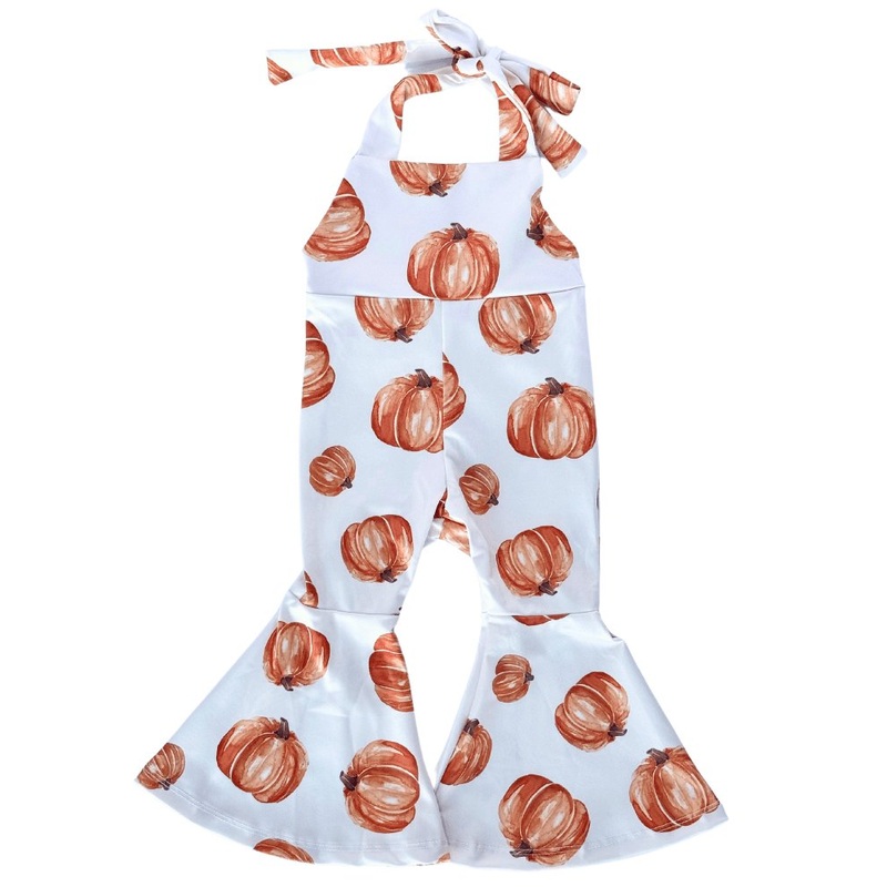 Get your little one ready for seasonal adventures with the Andi Pleated Bell Bottom Jumpsuit in a delightful pumpkin patch print! This charming jumpsuit combines playful design with a stylish silhouette, making it perfect for family outings to the farm, Ha