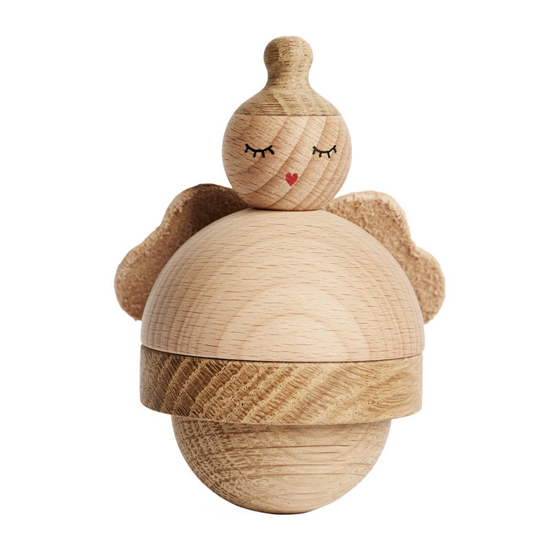 The Angel is made of a mix of beech and oak wood and has a leather string for hanging.