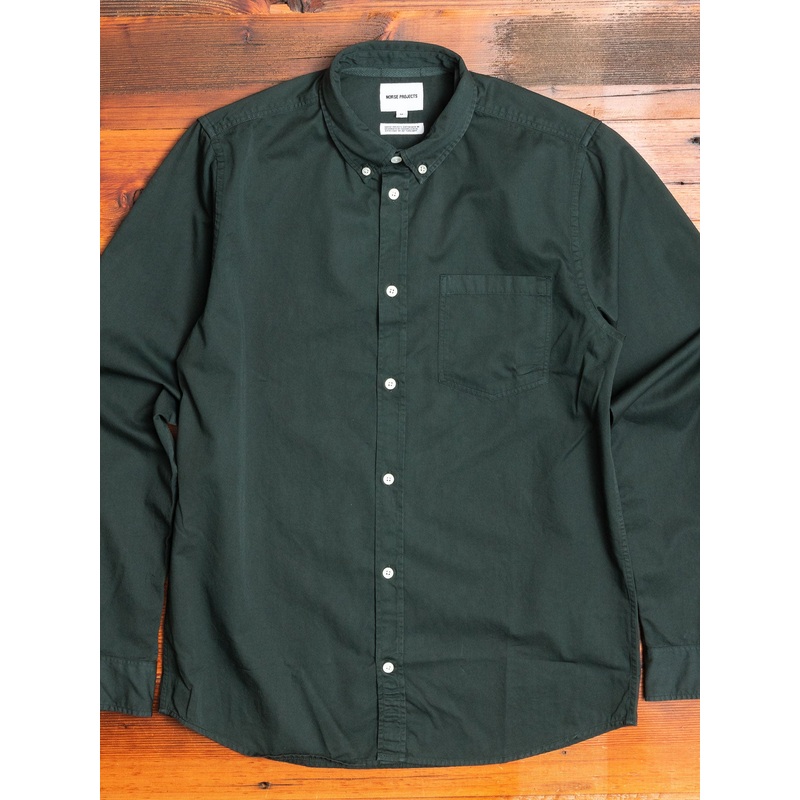 • A Norse Projects staple, the Anton shirt is a classic button-down shirt receiving design cues from the brand’s minimalist roots. Wovenin a lightweight cotton twill fabric, the shirt undergoes a garment dye for a deep color that will continue to transform over time. The shirt comes fitted with Mother of Pearl buttons. button-down collar, and a single chest pocket.