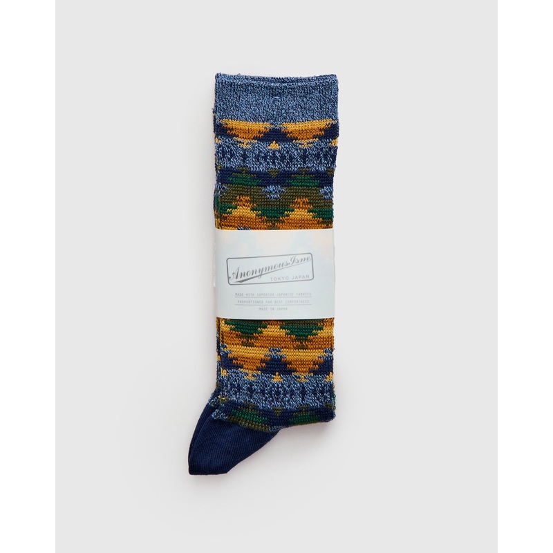 • The Apachecrew socks from AnonymousIsm are a soft full-length sock that feature a repeating Southwestern-style pattern throughout. Each pair of AnonymousIsm socks are expertly crafted by their team in Tokyo, Japan.