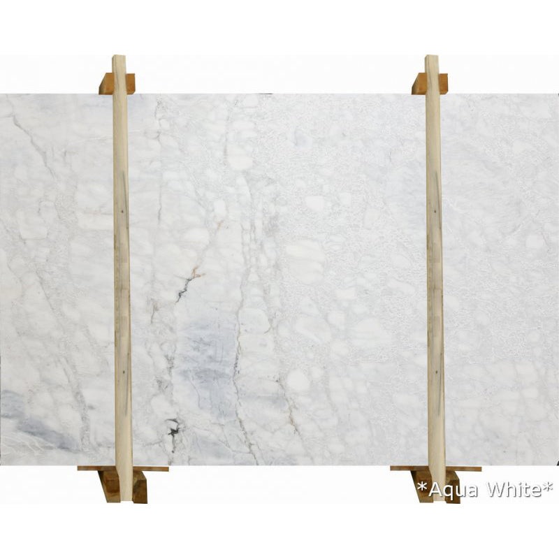 Aqua White Marble Slabs Polished is available in 2cm(=3/4") or 3cm(=1 1/4") thick. Marble slabs are the perfect stone material for bathroom vanity tops, certain kitchen countertops, and sophisticated wall coverings. History has shown that this natural mate