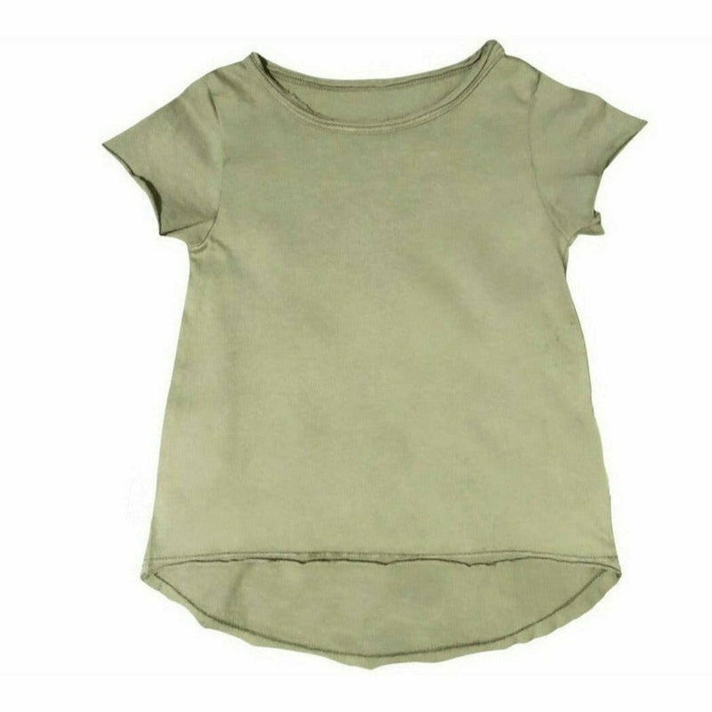 Staple year round basic featuring intended relaxed cut for a comfortable fit. Raw edge details. Crafted from buttery soft breathable premium combed cotton, this fun tee has a drop back hem. Perfect for layering. Available in other colors.Machine washable a