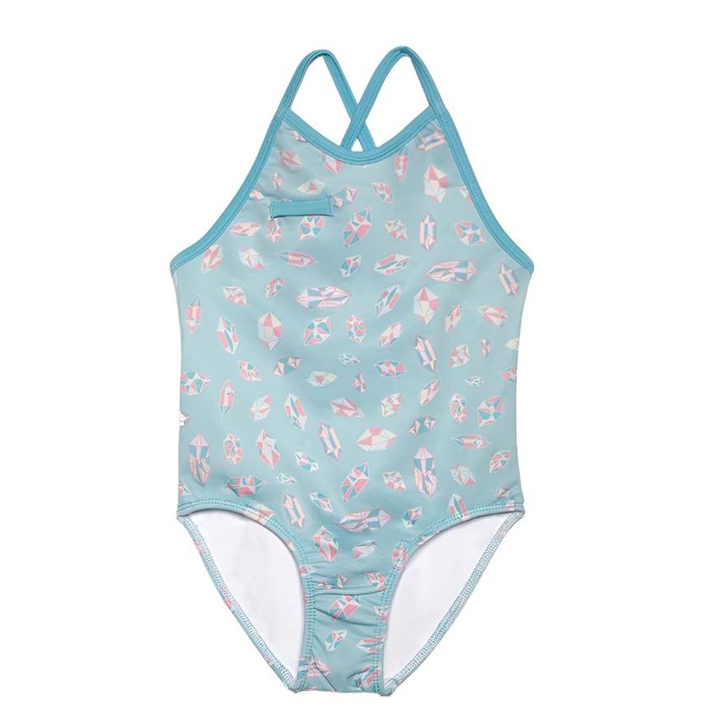 The AYLA Full Piece Suit is perfect for active little ones and tweens alike. The cross back makes it suitable for swim class, snap goggle loop and hidden back pocket make it handy for exploring and collecting seashells! Bright colors and hand drawn designs made with kids’ imaginations in mind. UPF 30+