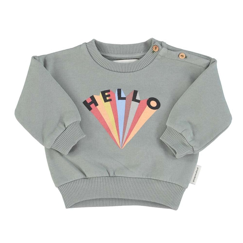 Unisex sweatshirt, multicolor print on the front. Little print on the back. Carded organic cotton fleece.