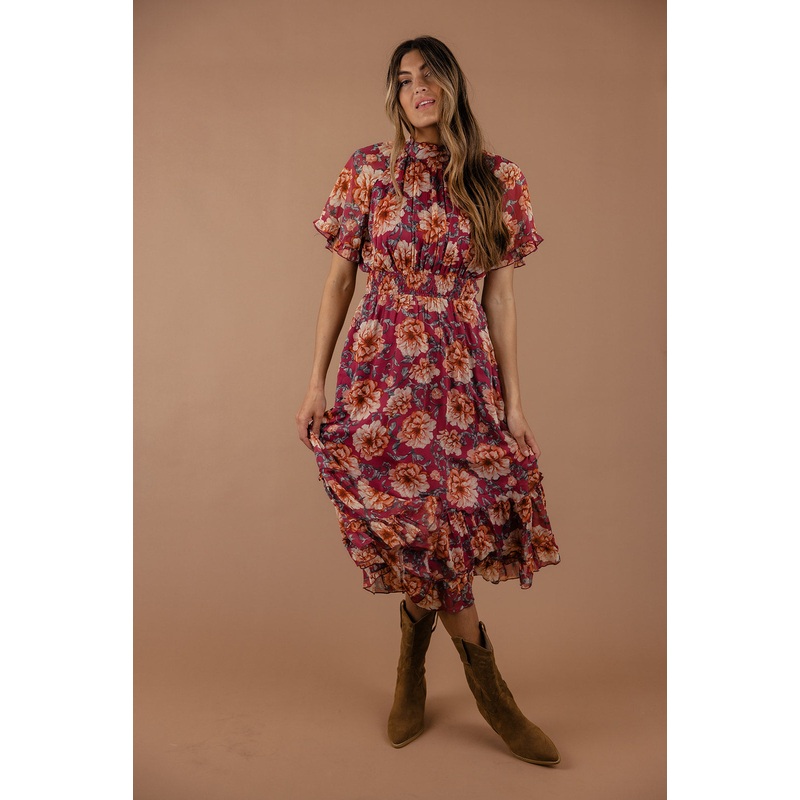 Step into summer in the Backyard Blooms Ruffle Maxi! It's got lovely ruffles all around,a high neckline, a cute keyhole with buttons at the front, and comfy raglan sleeves. The waistline is smocked for a perfect fit, and the skirt is tiered with even more