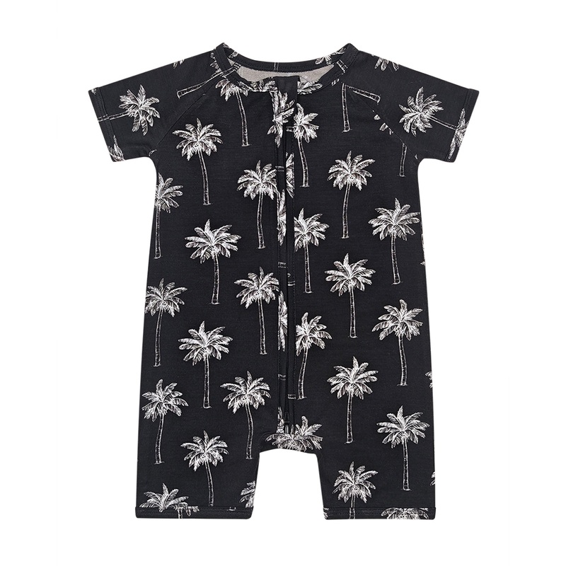 Bring the island breeze to your little ones wardrobe with our Bamboo Shorty Romper | Palm Style Black.