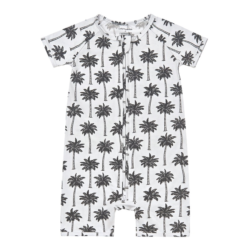 Bring the island breeze to your little ones wardrobe with our Bamboo Shorty Romper | Palm Style White.