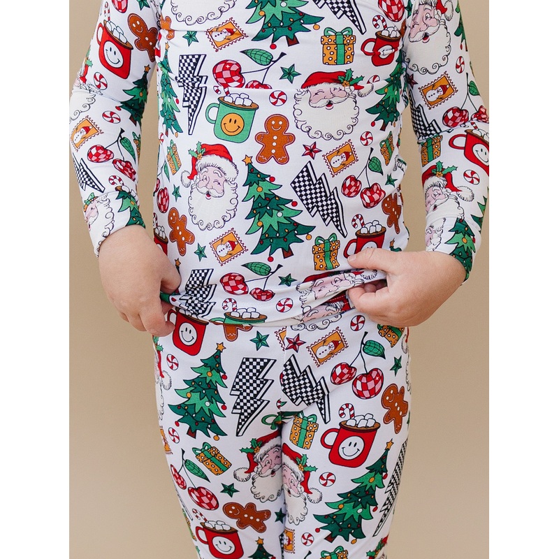 Santa faces, gingerbread cookies, and the coziest bamboo ever. The Bamboo Two Piece Set | Christmas Vibeshas everything merry wrapped up in one playful print.