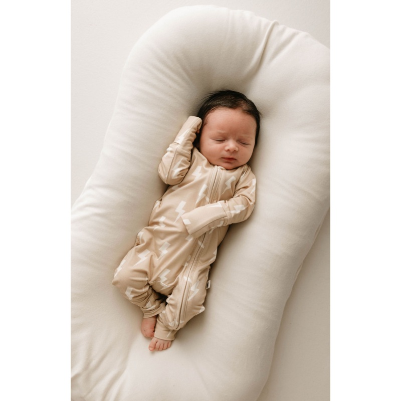 Bamboo Zip Pajamas | Tan & Cream Lightning Bolt