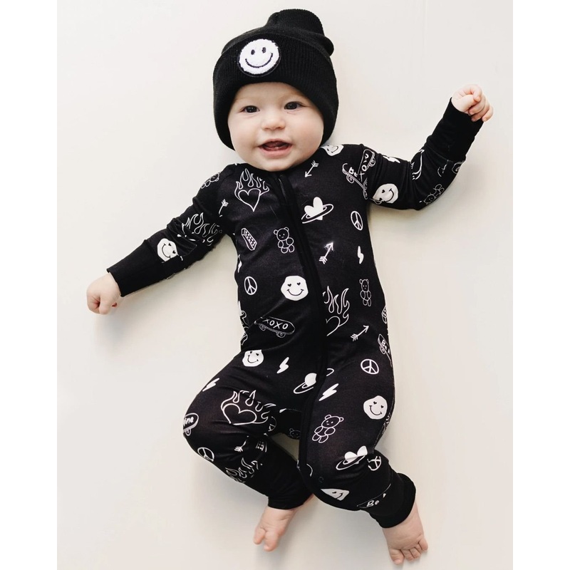 Rad little Valentine! This zip romper is ultra-soft and stretchy, with fold-over mittens and footies up to 12-18M. Plus, the 2-way zipper makes diaper changes super easy.Your little one will stay cozy and comfortable, whether it’s playtime, nap time, or cuddle time.