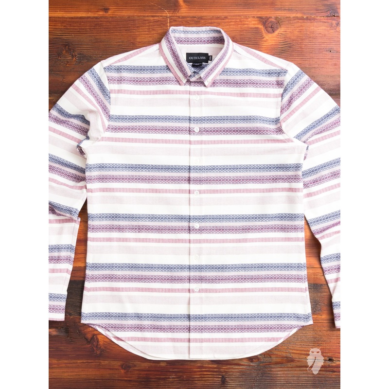 DetailsSizingBrand InfoThis button-down shirt from Outclass is made from a warm Portuguese flannel fabric. Inspired by traditional Southwestern designs, the shirt features a classic horizontal barre stripe pattern with rotating weaves and colors. The class