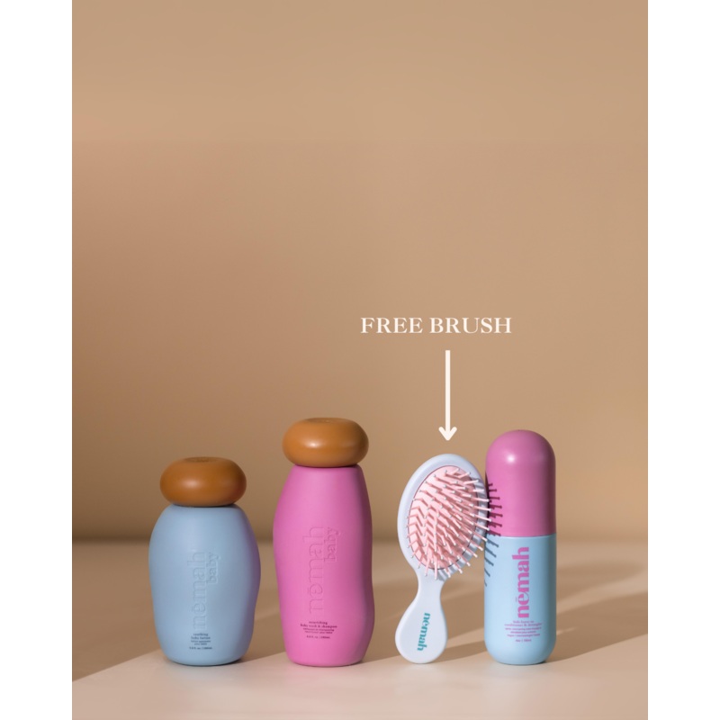 Introducing the Bath-Time Trio! This set includes our detangling spray, wash & shampoo, and lotion, each carefully create to make bath-time happy hour. Our Nourishing Baby Wash & Shampoo designed to cleanse & nourish the most delicate skin and leave hair soft and tangle-free. Soothing Baby Lotion tomoisturize and soften sensitive skin. Kids Leave-In Conditioner & Detangler Spray to banish knotsmaking hair care smooth, simple, and stress-free.