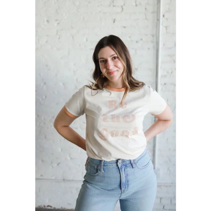 Be the Good Retro RingerTeeOurmost popular t-shirt reimagined in a ringer form.Encouraging others to be their absolute best selves.Fun Facts:Made with 100% Organic CottonDyed using non-toxic dyesCare:To keep your tee fitting its best overtime, we recommend