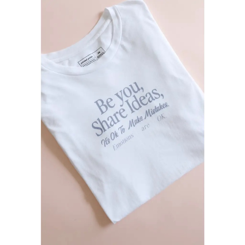 Be You, Share Ideas, It's Ok to Make Mistakes, Emotions are Okay. A saying that is inspiring and relatable makes for the perfect everyday tee. The design is exclusive to Polished Prints and designed to inspire all those who wear it and those around them. T