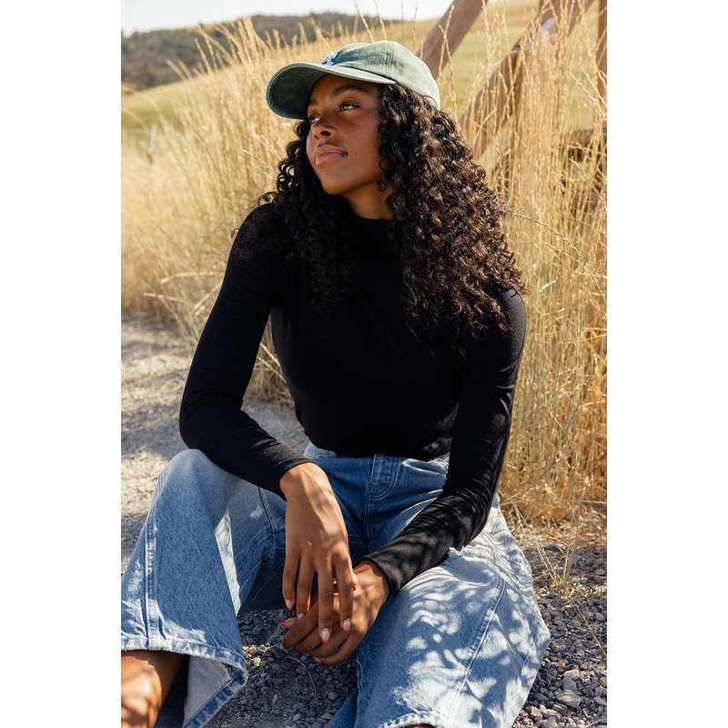 Stay snug and stylish in this soft black mock neck, ideal for layering as the weather changes! Trust us, this piece is essential because you can pair it with anything and everything.soft + stretchy// paired with jeans coming soon!