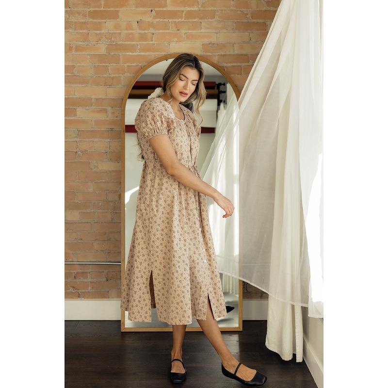 This floral dress is everything! The dainty florals and medium-weight fabric are perfect year-round. With a gathered round neckline, elastic puff sleeves, and a cute waist tie, its comfy, cute, and flattering all in one. Perfect for any casual outing or just because!
