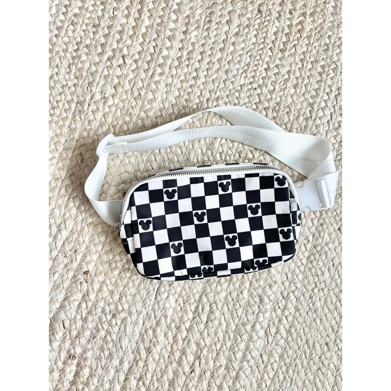 BlackCheckered Magical Belt BagThe perfect belt bag for the parks!These are made of a canvas material and so stinking cute!Features mesh pockets inside to help keep things in placeHeavy duty durable zipperAdjustable strapOutside zipper pocketBag measures 8