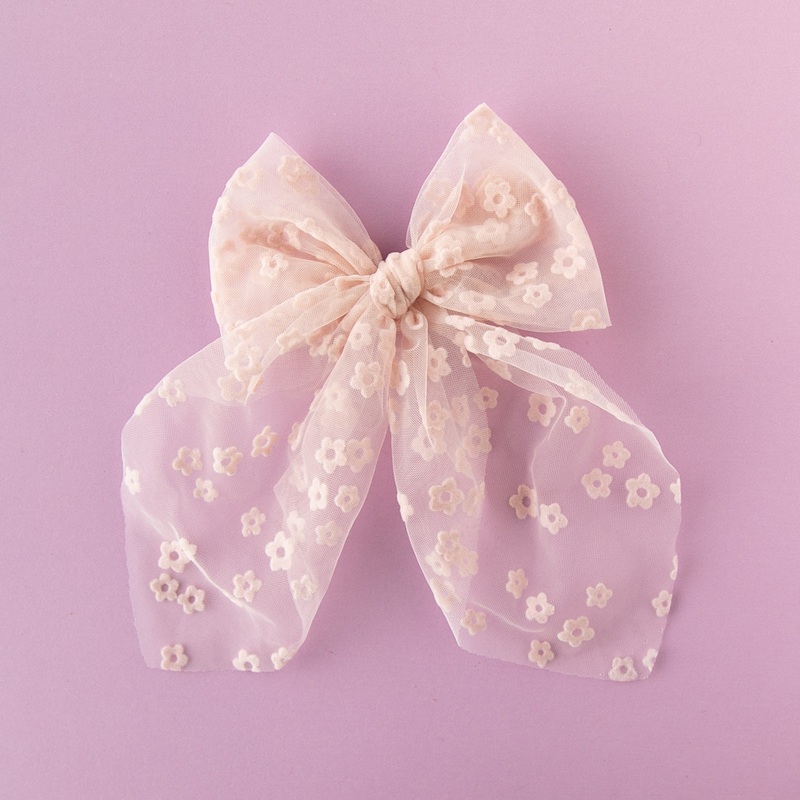 Available on an alligator clip – Best option for your older babes. The silver metal clip can easily be rotated to be worn on either the right or left side.