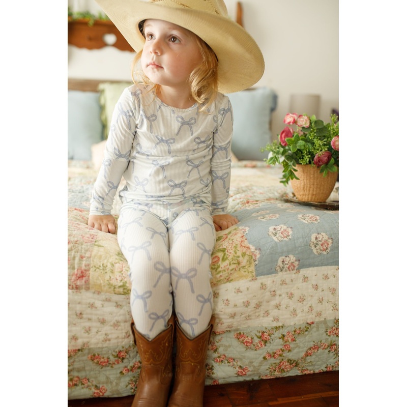Our 2pc Ribbed Bamboo Pajamas are designed for ultimate comfort and a peaceful night's sleep. Made with a premium blend of 95% bamboo viscose and 5% spandex, these pajamas offer a soft, stretchy, and breathable feel.Available in sizes from 18/24 months to