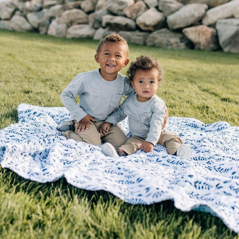 Be the first to review “Blue Leaves + Cornflower Classic Muslin Super Snuggle Blanket”