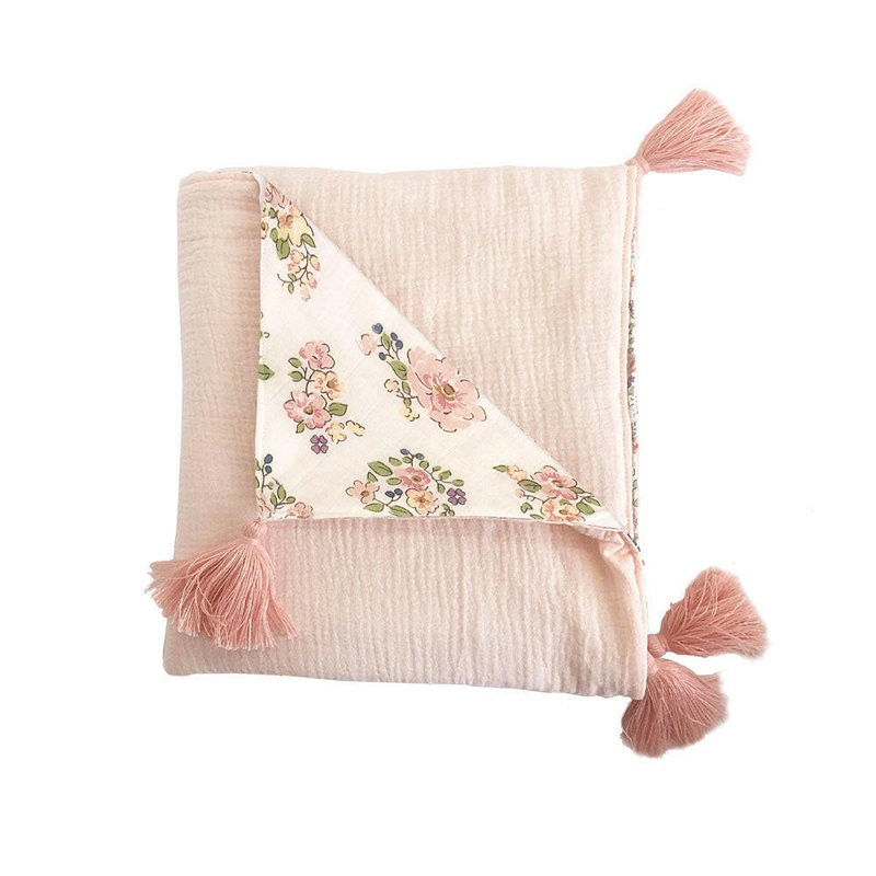 BLUSH PINK AND FLORAL DOUBLE SIDED MUSLIN PLAY MAT