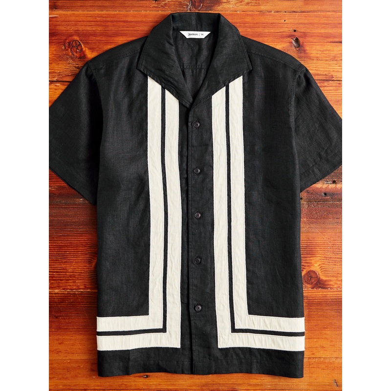 DetailsSizingBrand InformationModeled after vintage 1950's open-collar vacation shirts, theBorder AppliqueLeisure Shirt from 3sixteen is crafted usinglightweight hemp fabric.The shirt features a stripe applique embroidered into the shirt base. Made in Indi