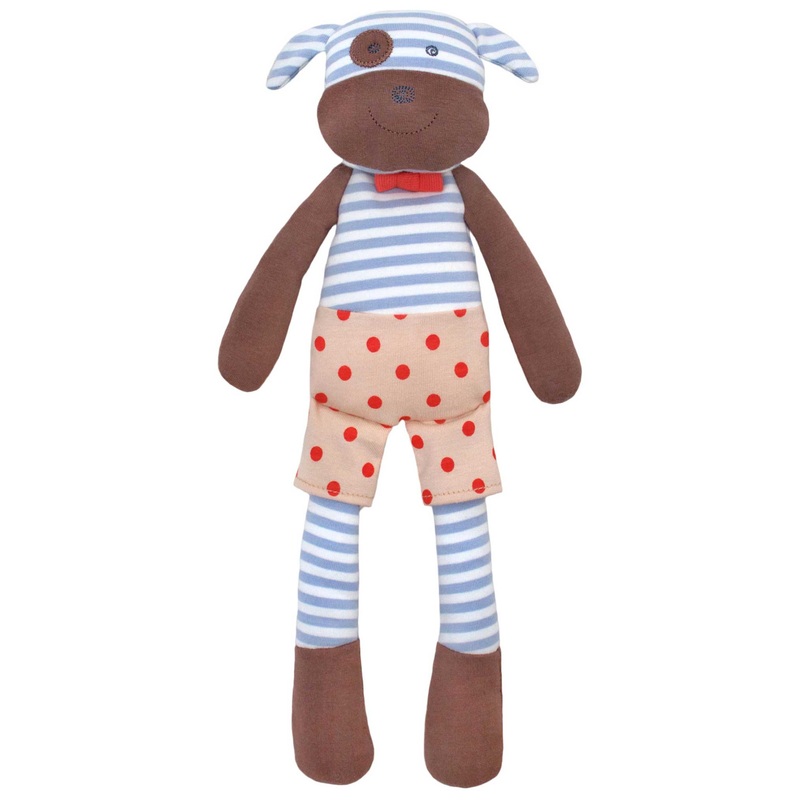 Size: 14 inches tall100% GOTS certified organic cottonFilled with organic cotton and naturally hypoallergenic corn fiberGOTS certified low impact fabric dyeSecurely sewn plastic-free, BPA-free, phthalate-free rattleEmbroidered eyes, nose and mouth details