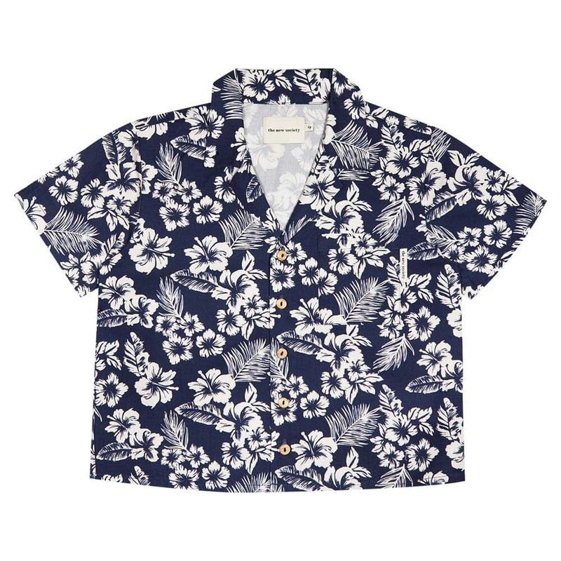 Rescues are brand new items with tags, sourced from aging collections and offered to you at a discount. Most overstock & retail returns in America are thrown away or kept in storage – by rerouting this inventory to Manymoons, with your help we are able to keep these products utilized and out of landfills. Shirt in fine twill cotton fabric with The New Society’s Hibiscus Print. Open front pajama collar and short sleeves.