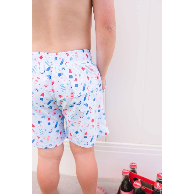 This full length swim short falls above the knee and offers UPF 50 sun protection in a bold print with a functional drawstring and folded tab back pocket.Pairs with our sibling suits in the Baby Swim, EmmaSuit and ZoeySuit.80% Polyester 20% SpandexHand was