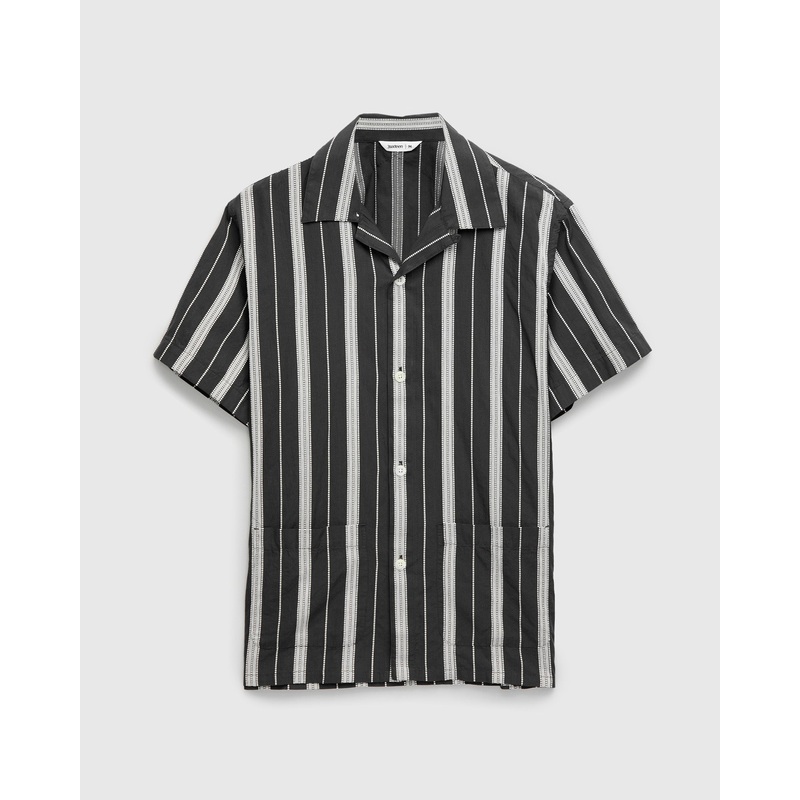 Cabana Shirt in Black Ticking Stripe