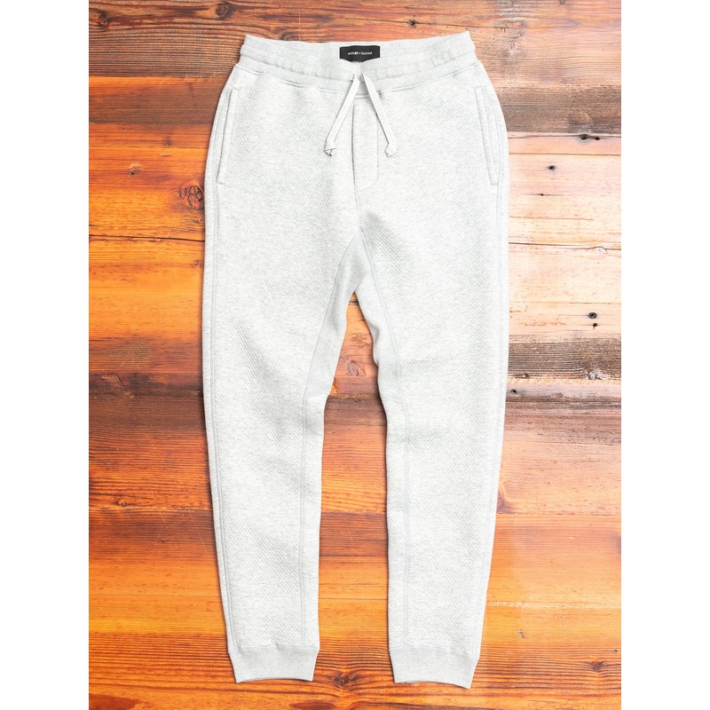 • Made from a custom three-layer Japanese fabric, the Cabin Fleece series from wings+horns has quickly become one of the brand’s most coveted signature collections. This season’s installment features a classic heather greycolor with accents ofgrey and white throughout. The pants are finished with signature details like herringbone tape drawcord, faux fly, and flatlock stitching throughout.