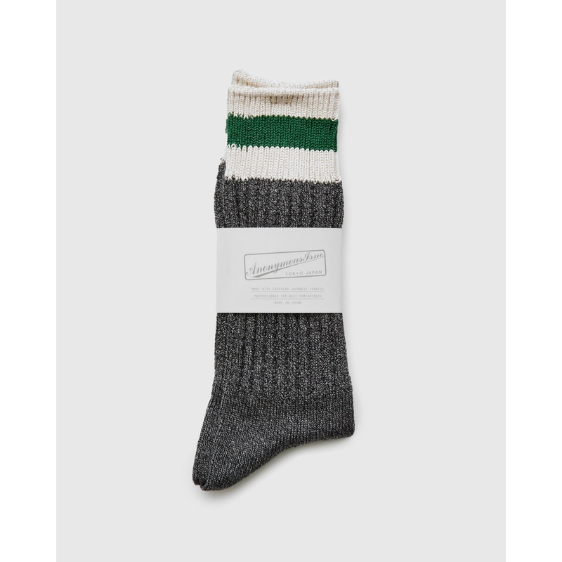 • The Cabin Stripe Crew Socks from AnonymousIsm are woven using the brand’s signature low-tension slub weave in a convenient crew length that is roughly the height of a standard boot. The socks feature a soft, pliable texture and a classic stripe design at the ankle. Each pair of AnonymousIsm socks are expertly crafted by their team in Tokyo, Japan.