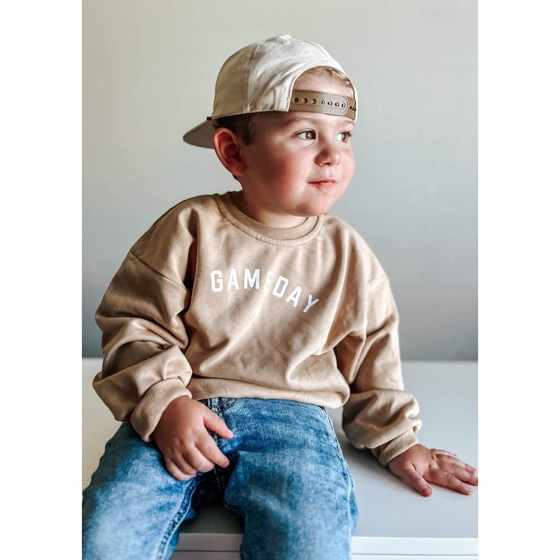Introducing our stylish graphic crewneck sweatshirt, a trendy addition to your little one's wardrobe. Crafted from cotton fleece, this sweatshirt provides both comfort and durability. *Please note that this material is different from the sweatshirt romper