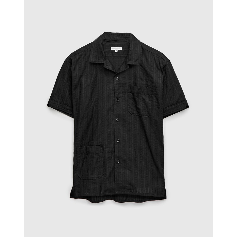 • Engineered Garments’ signature short sleeve shirt, the Camp Shirt is designed with a contemporary twist boasting a relaxed fit, spread collar, and straight hem occupying the space between formal tailoring and casual. Engineered from a lightweight cotton lace jacquard fabric, this shirt features a woven striped design. Complete with a single chest pocket, spread-collar, straight hem, and a button-down placket.