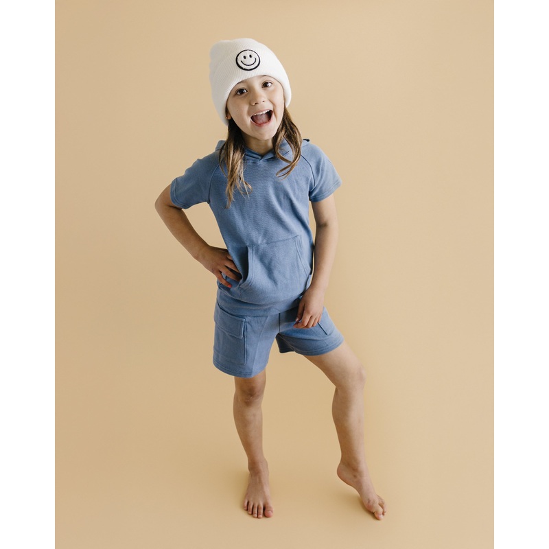 Bring a splash of color to their wardrobe with the Cargo Shorts Set in Blue. Made from soft, premium cotton fabric, this set offers all-day comfort and a breathable fit. The hoodie with a front pocket and the cargo shorts with convenient pockets make it bo