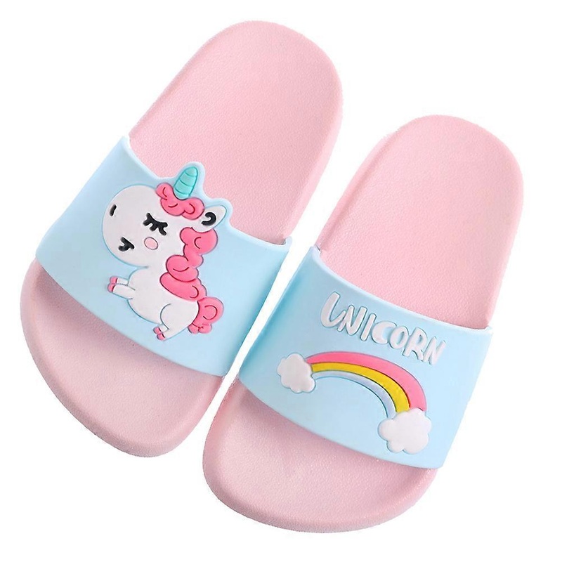 Description This is a pair of slippers, with the unicorn design and material, these slippers are comfortable to wear, chic and delicate. The decorative cartoon pattern make the slippers more special. It is perfect for kids wearing at home or out. Features