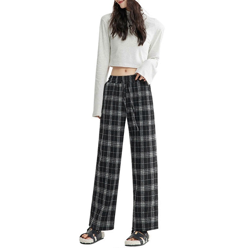 Casual Loose Checkered Long Pants for Women Winter Fleece Lined Drawstring High Waist Wide Leg Sweatpants with Pockets Black XL | Fruugo SG