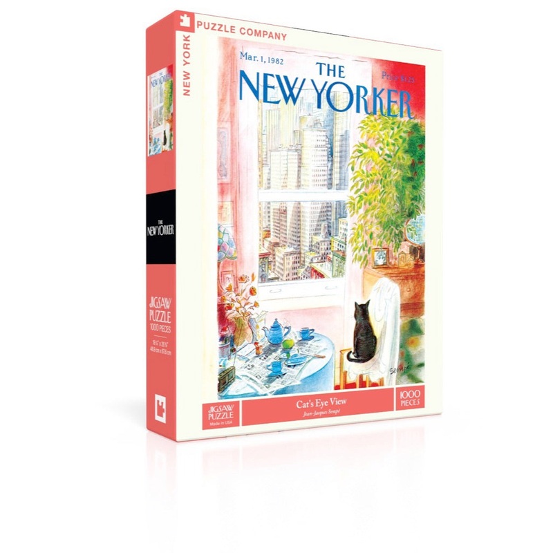 Bring a touch of feline charm to your puzzle collection with Cats Eye View, a bestselling 1000-piece jigsaw puzzle that perfectly captures the essence of New York City. In this whimsical New Yorker cover by artist Jean-Jacques Semp from March 1982, a thoughtful black cat perches on a chair in a New York apartment, gazing out over a table set for tea and taking in the mesmerizing city skyline.