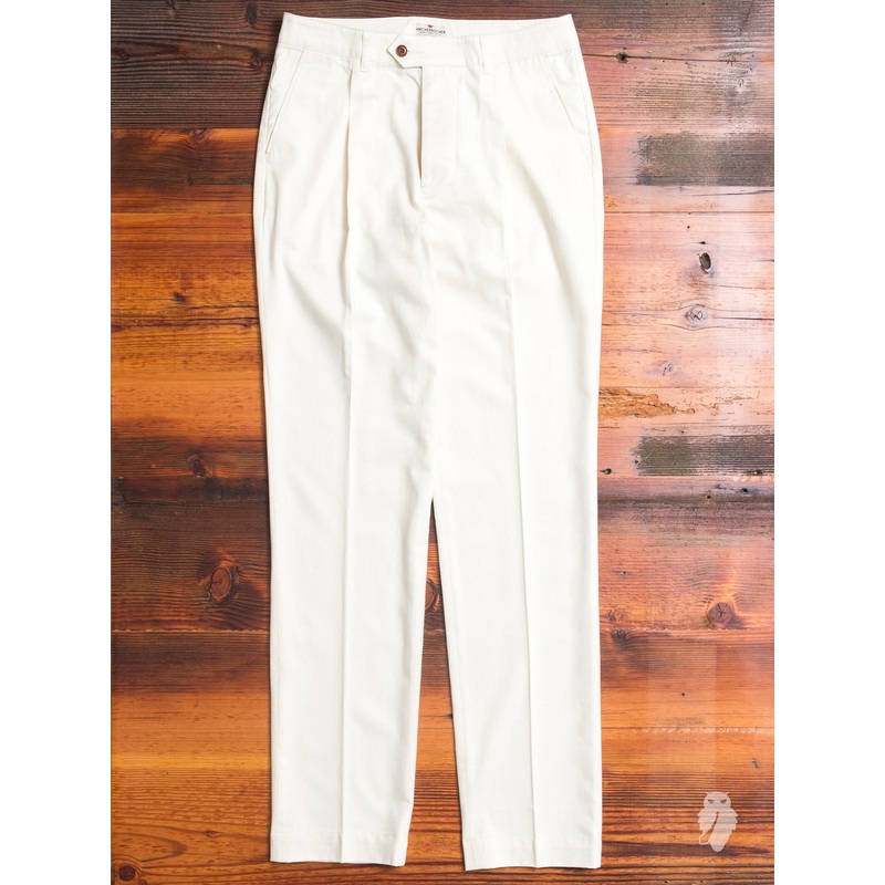 • TheKMFG Chinos from Knickerbocker serve as an update to their beloved Service Trouser. Taking inspiration from British officer uniforms of the 1940’s, these chinos feature a front crease, a slight taper and less body throughout than their predecessors. Period-correct details such as the slant pocket design, coin welt pocket and melamine buttons have been carried over to this edition.
